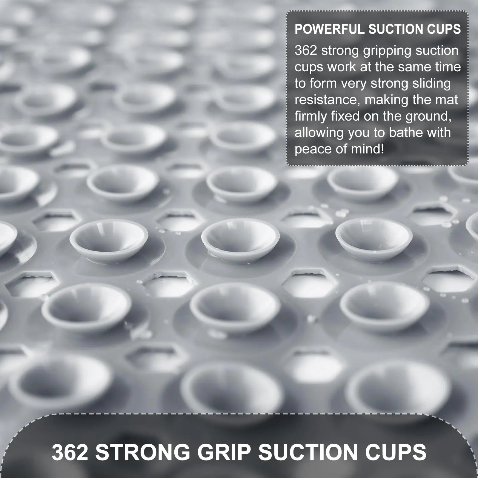 NON SLIP safety is our priority with our bath and shower mats, featuring numerous strong suction cups for a secure, anti slip surface. The soft topside is gentle on the feet, ensuring a safer, cleaner, and more comfortable bathing experience for you and your family. PLEASE NOTE for smooth, non-textured bath and shower surfaces only.