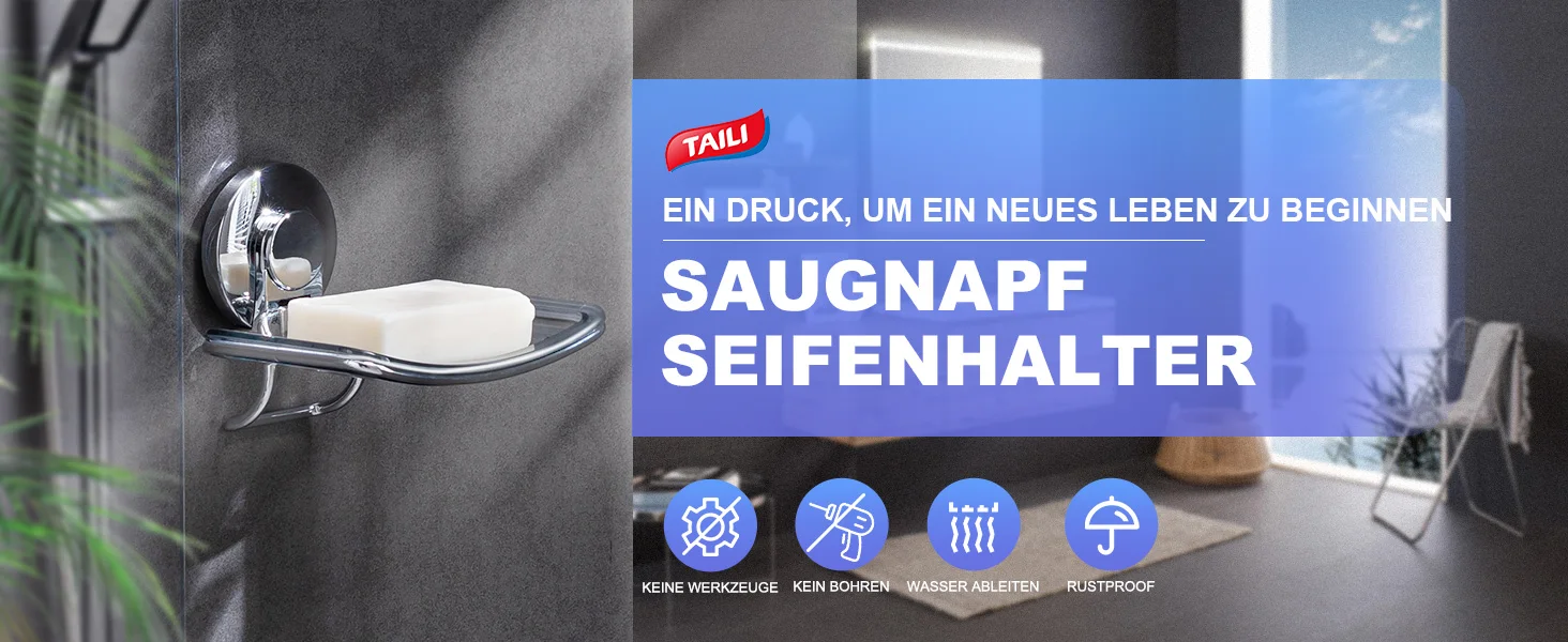 TAILI Soap Holder Suction Cup Soap Dish for Shower Wall Mounted Bar Soap Saver Self Draining Soap Tray for Bathroom Kitchen