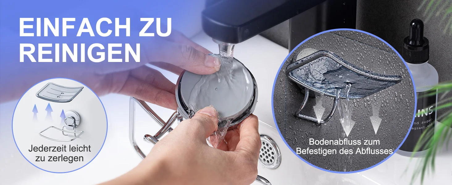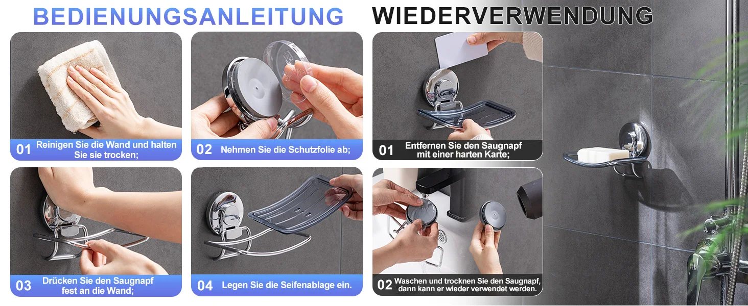 【Removable & Reusable】: Due to the using of suction cup, the bar soap container for bathroom can be detached from the wall easily, which causes NO damage to your wall. Only need to clean up the suction pad and have it dry, it can be reused again as brand new. Fully Removable & Reusable.