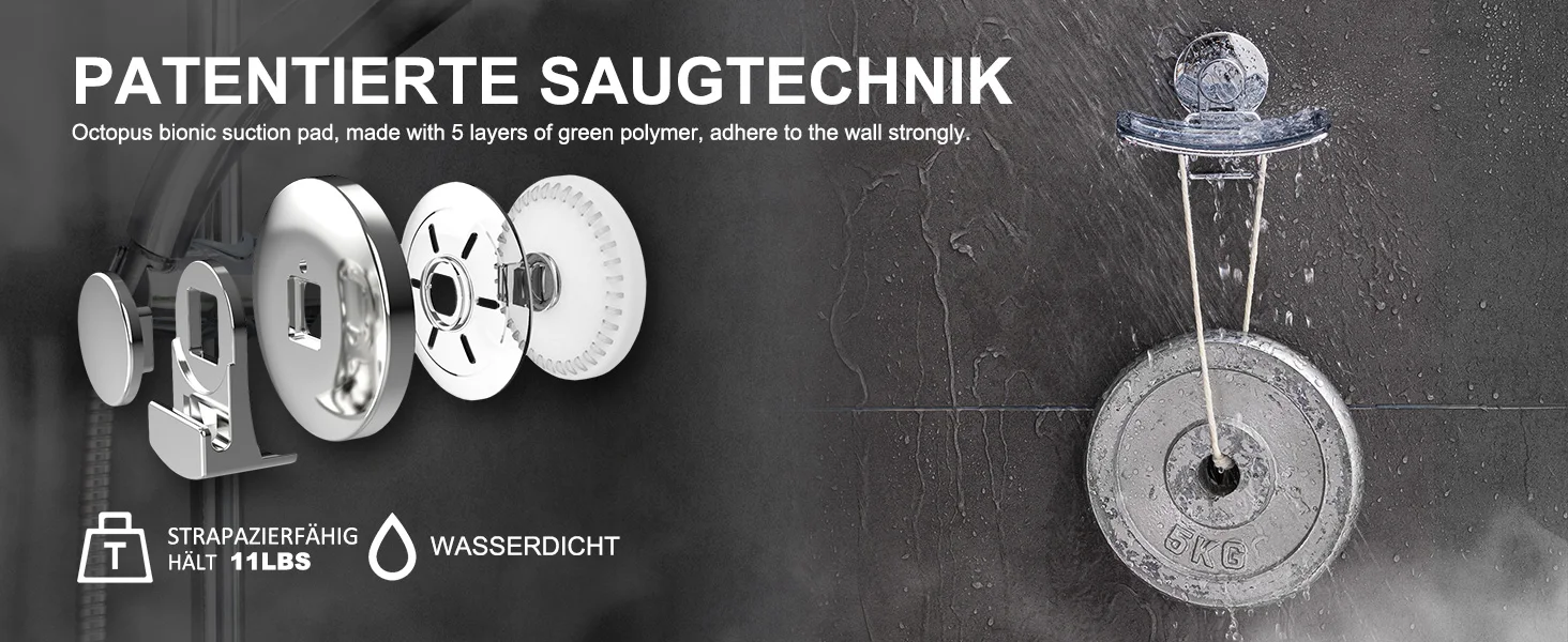 【Super Strong Bearing】: This is a heavy duty shower suction soap tray that applies the principle of vacuum adsorption inspired by octopus tentacles. Through this bionic technology, the suction cup can hold up to 11lbs/5kg. Super strong suction is powerful to hold up any type of soaps and sponges.